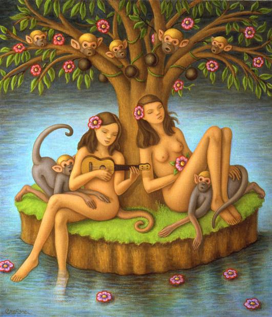 Victoria Frances is famous Spanish artist who works in the Gothic style. Her paintings depict young women suffering from love to obsession of vampires. Artist has a collection from Venetian carnival scene.